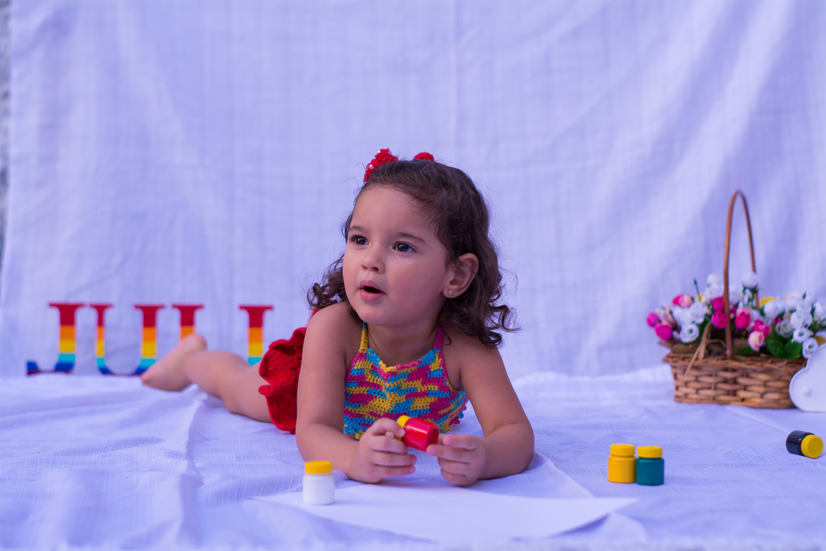Ensaio muito colorido com a pequena e linda Júlia, pintando o 7 para comemorar seus 2 aninhos!